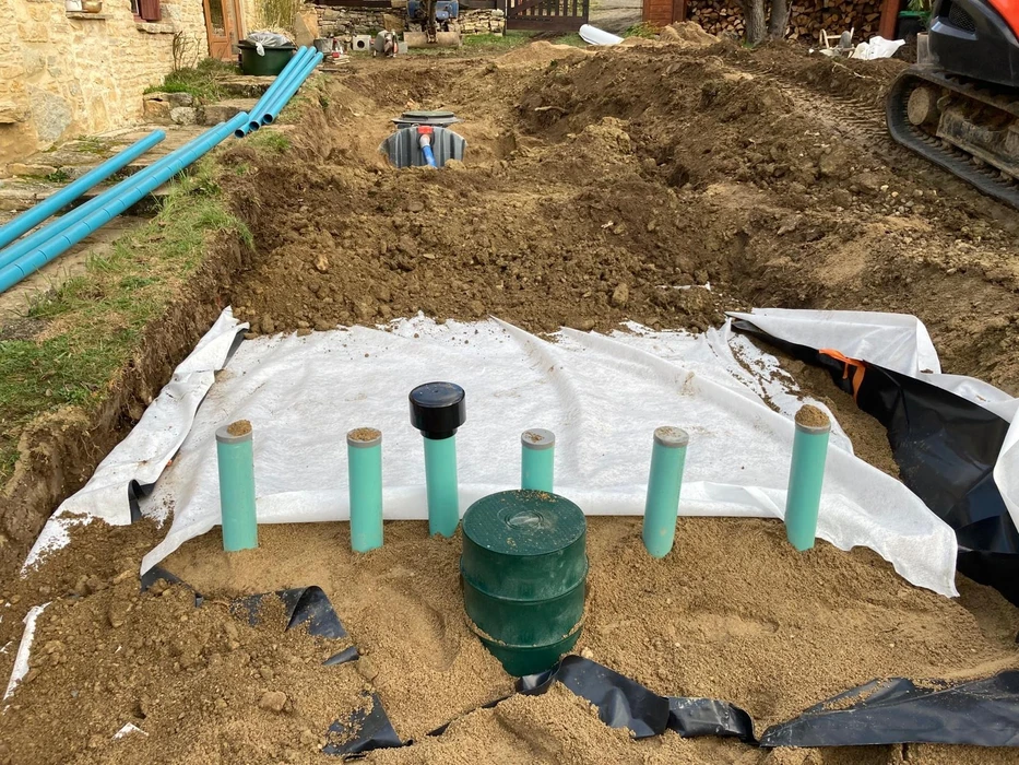 Installation de systèmes comprenant une fosse toutes eaux (prétraitement) associée à un filtre à sable ou lit d'épandage (traitement secondaire), dimensionnés selon les spécificités de votre terrain.